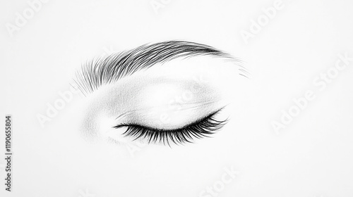 Artistic sketch of a closed eye with detailed lashes and eyebrow