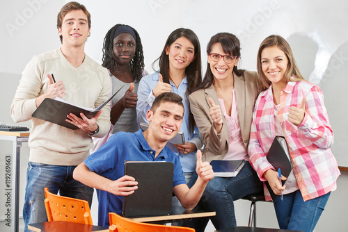 Lehrer Schüler halten Daumen hoch