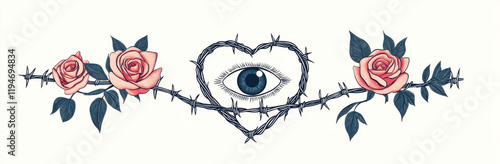 Hand-drawn heart illustration with decorative patterns and small hearts