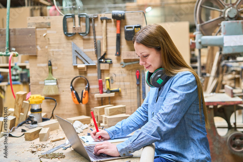 Experienced craftsman mentoring young apprentice in busy lumberyard