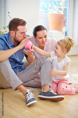 Familie und Kinder haben Spaß mit Luftballon