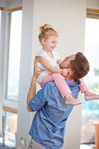 Familie mit Vater und Tochter zu Hause