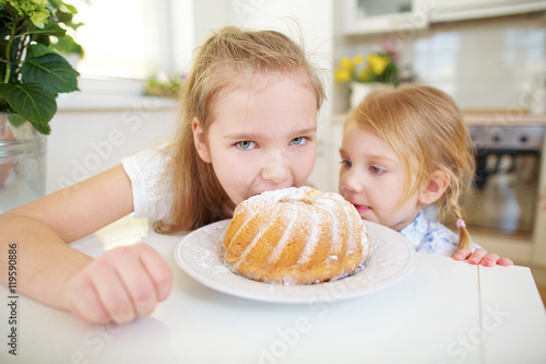Zwei Kinder kosten von Napfkuchen