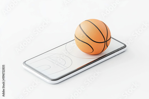 Digital representation of basketball court and ball on modern smartphone