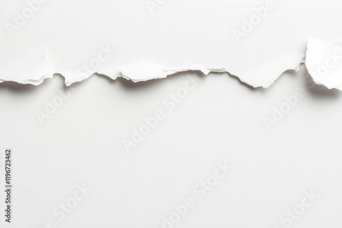 Hole breaking through white wall with cracked edges, creating a cut-out effect