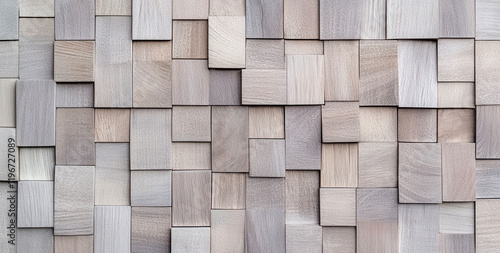 Colorful wooden cubes aligned in a geometric, intricate pattern
