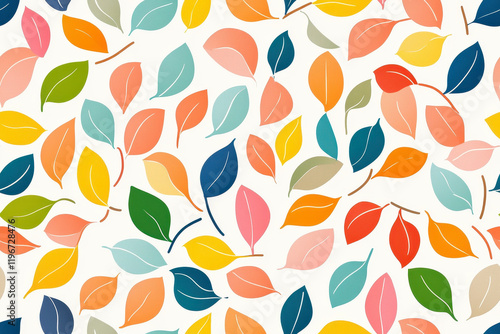 Colorful floral seamless leaf pattern with organic shapes and bright autumn tones