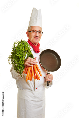 Koch mit Pfanne und Möhren