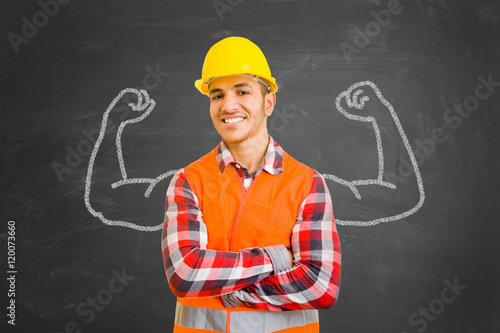 Selbstbewusster Bauarbeiter mit Muskeln aus Kreide