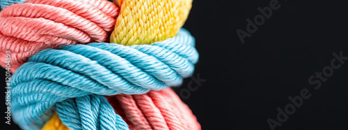 Vivid closeup of intertwined colorful ropes, showcasing strength and unity