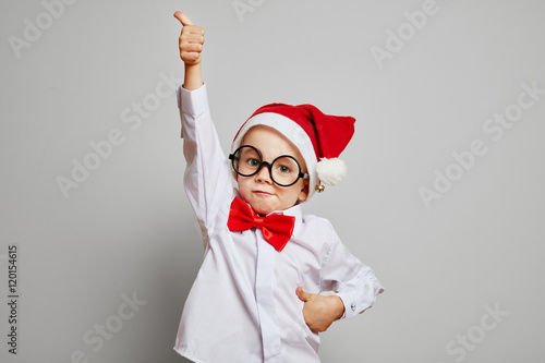 Kind hält Daumen hoch bei Weihnachtsfeier