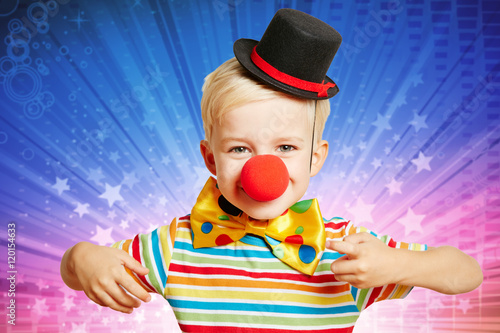 Kind als Clown verkleidet zu Karneval