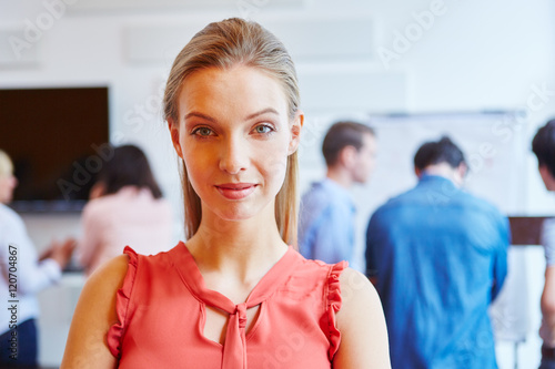 Pfeil vor Mitarbeiter Portraits als Unternehmenswachstum Konzept