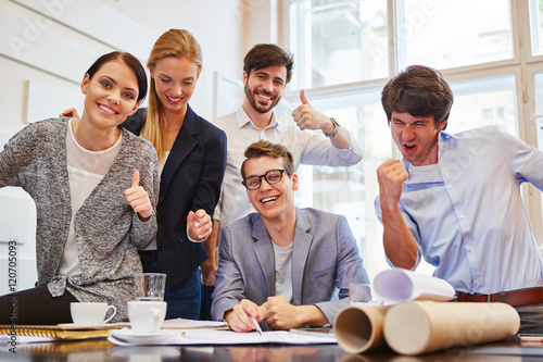 Panorama aus Silhouetten von Geschäftsleuten vor bunten Business Portraits