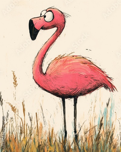 Cute cartoon flamingo, perfect for children's books or playful illustrations