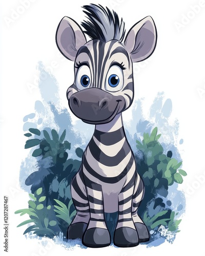 Cute happy zebra cartoon in watercolor, perfect for nursery decor or children's illustrations with a minimal design