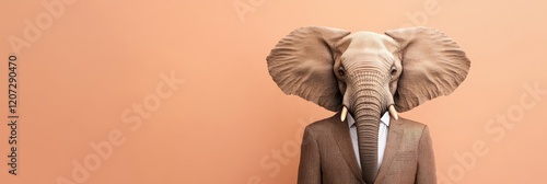 Elephant Head Wearing Suit Against Solid Bronze Background