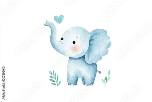Adorable watercolor baby elephant blowing a heart for nursery decor
