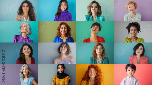 Colorful multicultural portraits of individuals showcasing diverse ages and expressions