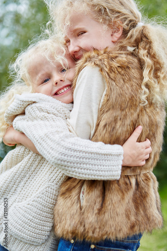 Mädchen umarmt ihre Schwester
