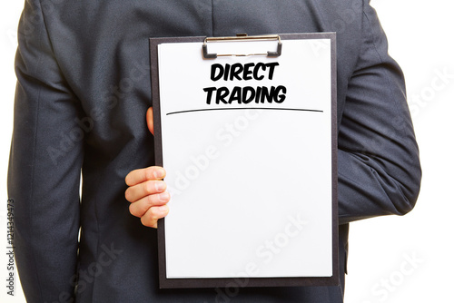 Geschäftsmann hält Klemmbrett mit Überschrift „Direct Trading“