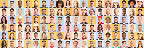 Portraits von vielen Generationen vor bunten Hintergründen als Gesellschaft Konzept