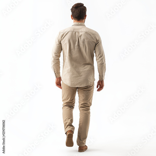 Friendly male park ranger in uniform waving and smiling in a full-body shot on white background