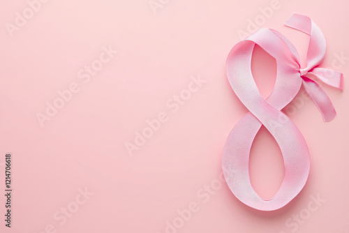 Beautiful pink ribbon bow with satin texture on white background for gift wrapping and decor