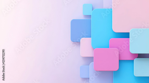 Colorful cubic shapes scattered on a soft purple background in 3D illustration