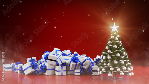Weihnachtsbaum neben Geschenken zu Weihnachten