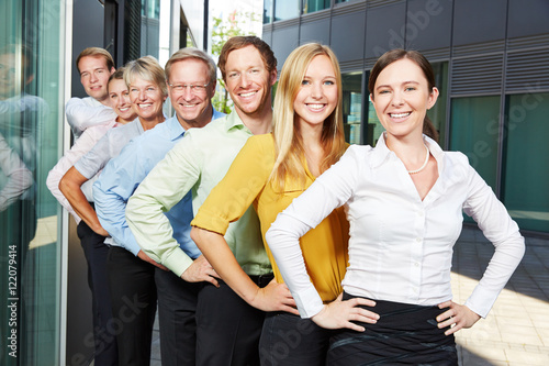 Glückliches Business Team in einer Reihe