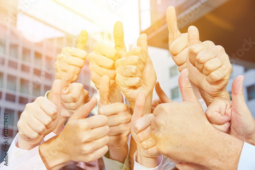 Geschäftsleute halten viele Daumen hoch