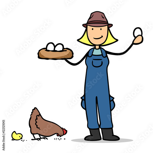 Cartoon Koch holt regionale Gemüsekiste vom Biobauer