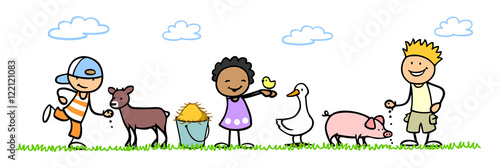 Kinder füttern Tiere im Streichelzoo