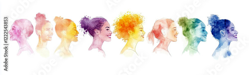 Watercolor Illustration Depicting Diverse Women Side Profiles in Vibrant Colors