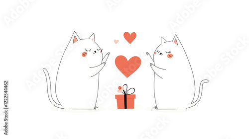 Romantic illustration of two cute cats with a red heart for Valentine's Day