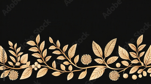 Elegant golden botanical border on a sleek black background