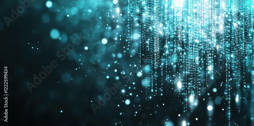 Abstract blue technology background with bokeh lights and digital pattern for business and technology concepts