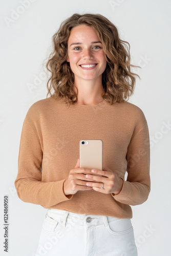 Smiling middle-aged woman in teal blouse with wavy red hair