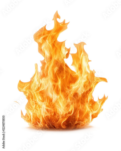 Realistic bright fire flames illustration with three distinct fiery elements on a white background, capturing dynamic energy and warmth in stunning detail.