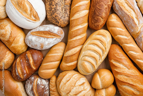 Assorted artisan breads and pastries displayed elegantly on a wooden surface