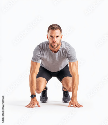 Focused Middle Eastern man standing in gym setting wearing workout attire