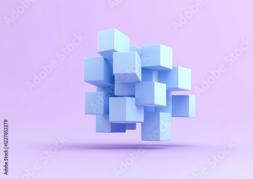 Floating isometric arrangement of interconnected blue cubes on a pastel background