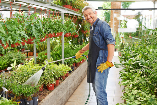 Gärtner arbeitet im Gartencenter
