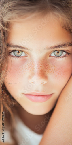 Close-up portrait of a Czech teen displaying a gentle and shy expression