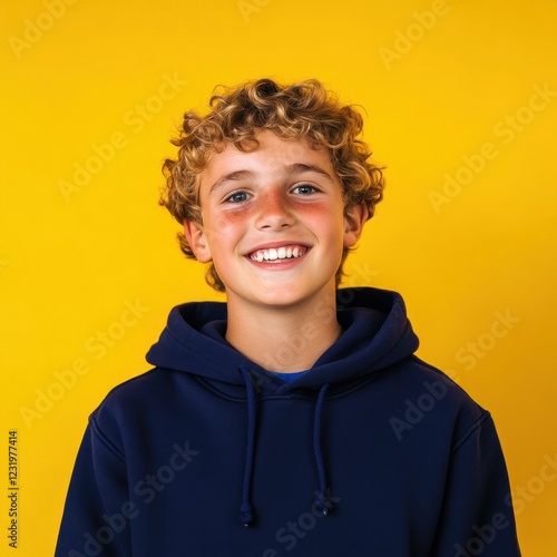 Smiling teenage boy with curly brown hair wearing green hoodie