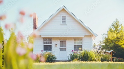 Charming 1960s modern ranch-style house with large windows and lush lawn