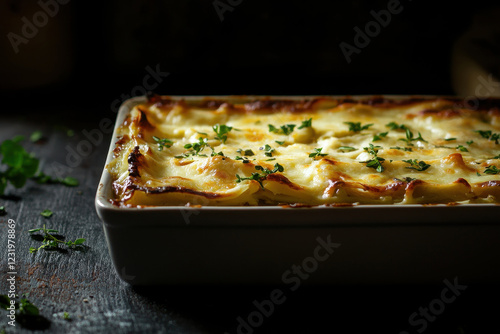 Delicious potato and cheese quiche with a decorative festive ambiance