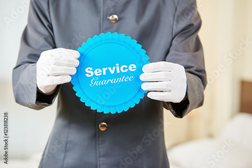 Hotel page holding service guarantee badge