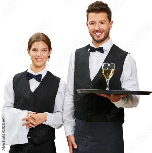 Kellner und Kellnerin servieren Weißwein